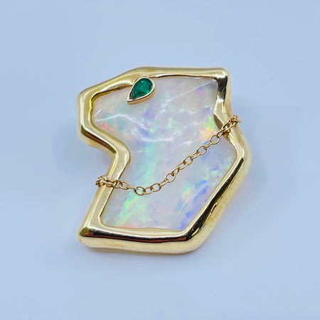 14kt Yellow Gold Opal and Emerald Pendant
