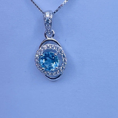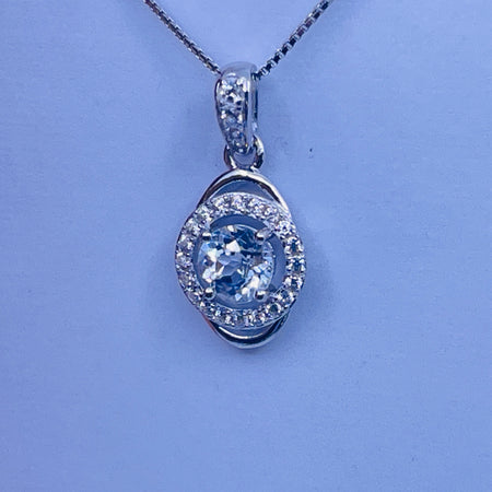 Sterling Silver lab Aquamarine Pendant with cz side stones