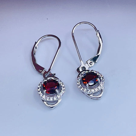 Sterling Silver Garnet Earrings with cz side stones