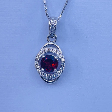 Sterling Silver Garnet Pendant with cz side stones