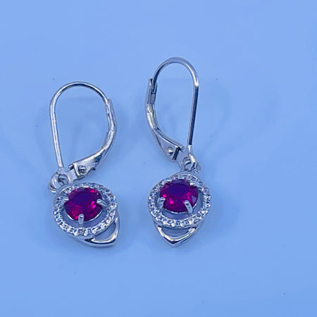 Sterling Silver Lab Ruby Earrings with cz side stones