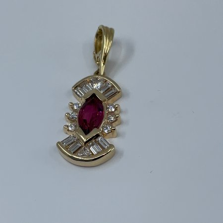 Quick Shop MD 14kt Yellow Gold marquise shaped 1.75ct Pink Tourmaline and diamond pendant slide $3,995.00