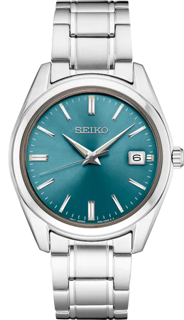 Quick Shop Seiko Seiko watch with a new blue color inspired by the richness of water. Crafted of stainless steel with scratch-resistant sapphire crystal, secure screwdown caseback and tri-fold push button release clasp. 10 bar, 100M Water Resistant $265.00